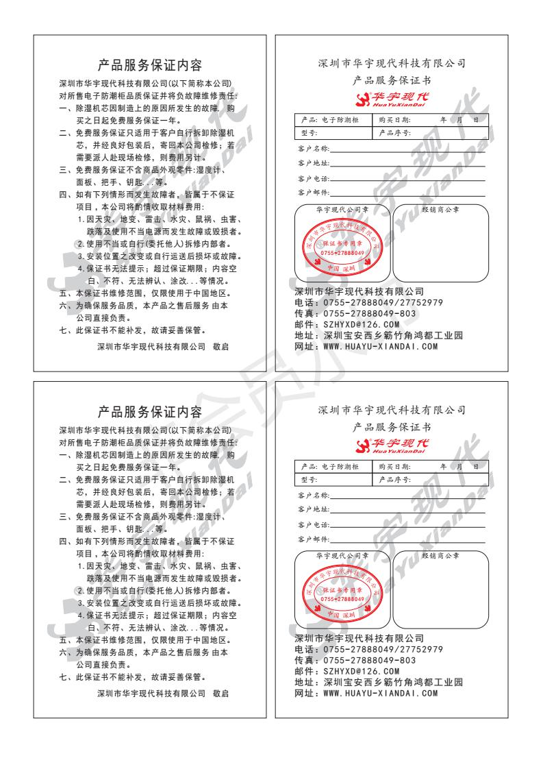 *服務保證書
